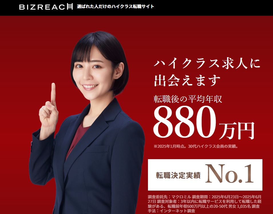 ビズリーチは、2009年4月にサービスを開始した、日本初の「求職者課金型」ハイクラス転職サイトです。