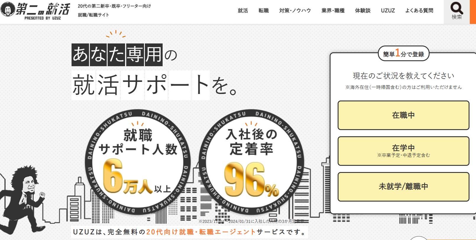 ウズキャリ第二新卒は、2012年に設立された株式会社UZUZが運営する、